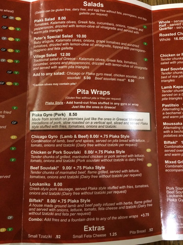 Plaka Grill offers a taste of authentic Greek cuisine with a variety of appetizers and sides that cater to different dietary preferences like vegan and vegetarian options. The appetizers range from calamari with garlic lemon aioli to falafel fritters, all bursting with Mediterranean flavors. Don't miss out on their premium sides like Gigantes Lima beans or Greek style green beans, perfect complements to any main dish. The menu also includes classic Greek dishes like Spanakopites and Tyropites, showcasing the rich and savory flavors of Greece. The casual yet classy ambiance, along with amenities like free Wi-Fi and outdoor seating, make Plaka Grill a perfect spot for lunch or dinner. Experience a taste of Greece at 1216 W Broad St Falls Church, VA 22046.